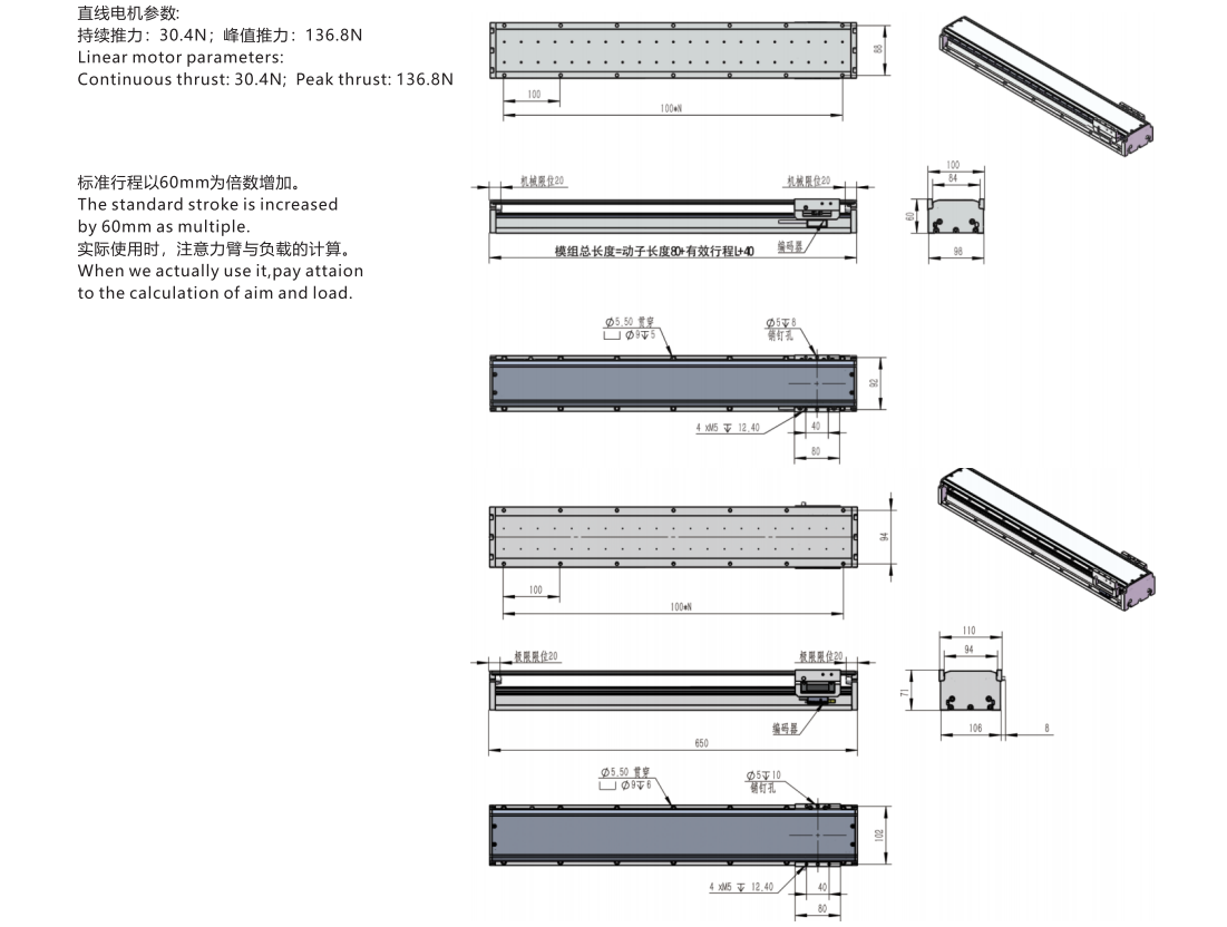 緊湊型直線電機(jī)模組同樣使用永磁同步直線電機(jī),包括動子和模塊化的定子。