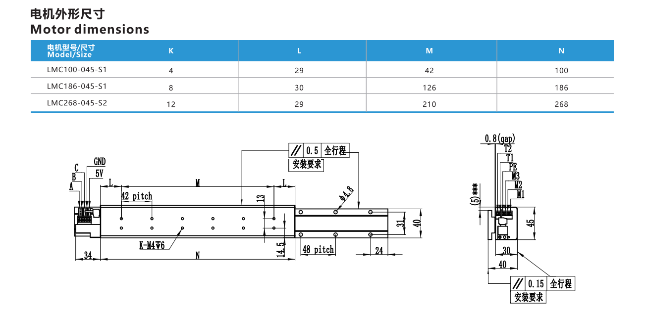 LMC有鐵芯電機采用了極佳的抗齒槽效應的解決方案,盡最大限度降低齒槽效應,這一切都無需偏斜磁鐵。它們外型小巧、低吸力,適合替代很多無鐵芯應用,電機產生的高推力使其成為加速和移動高質量以及加工過程中保持剛度的理想選擇。