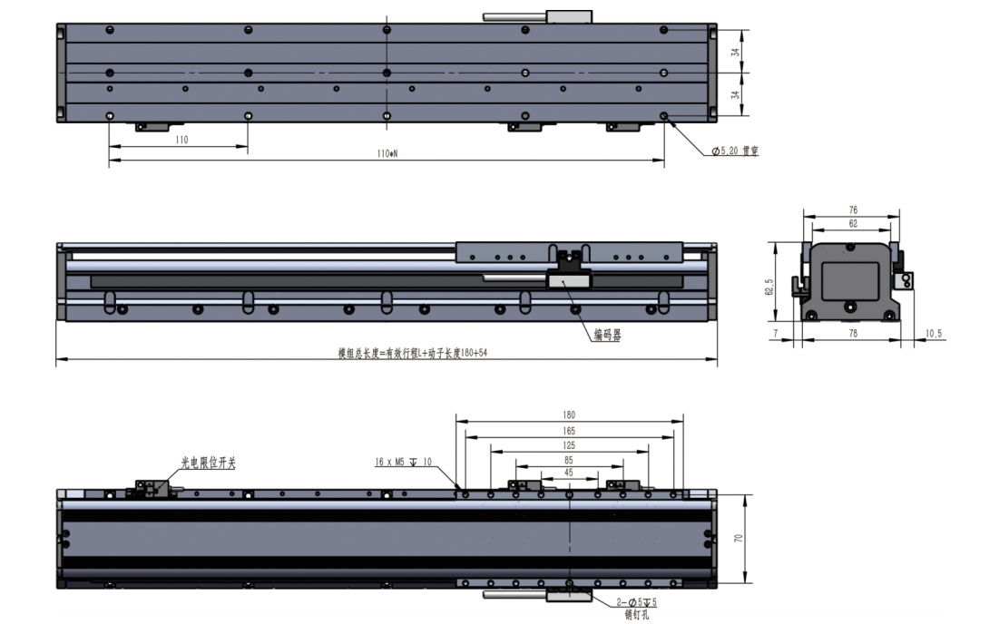 緊湊型直線電機(jī)模組同樣使用永磁同步直線電機(jī),包括動(dòng)子和模塊化的定子。
